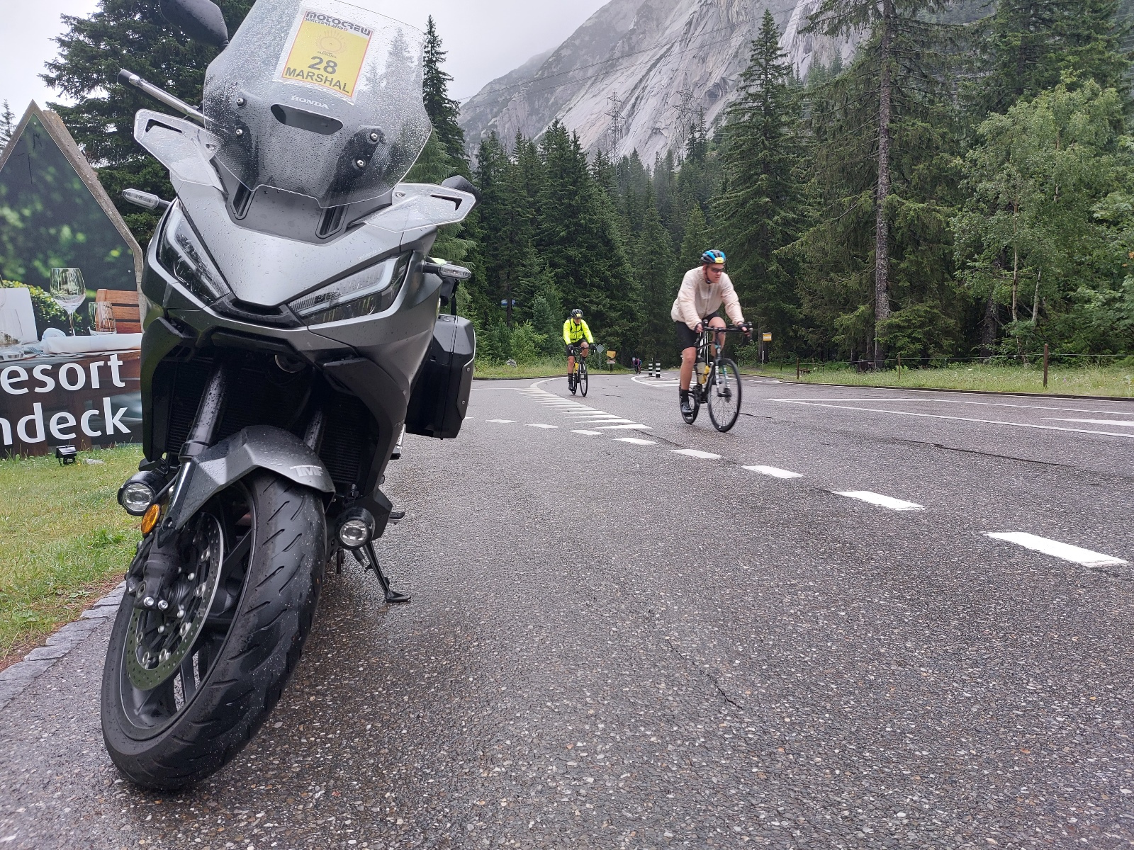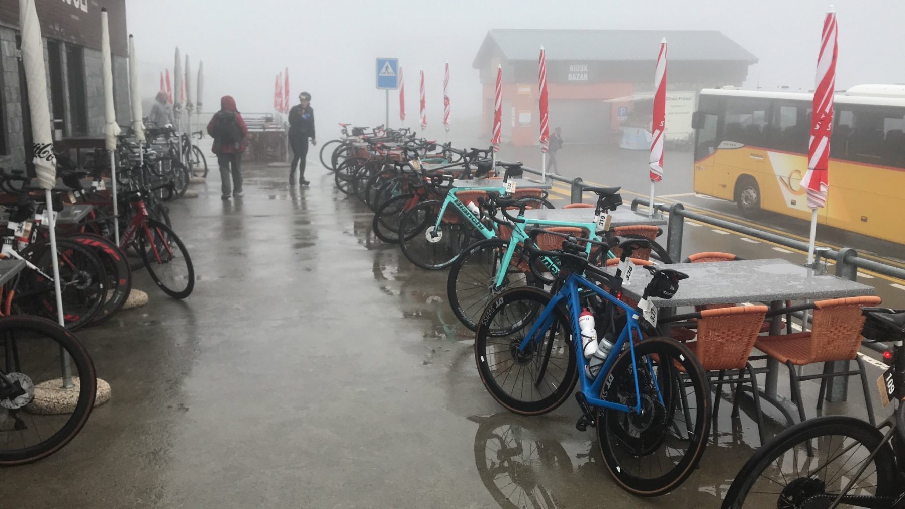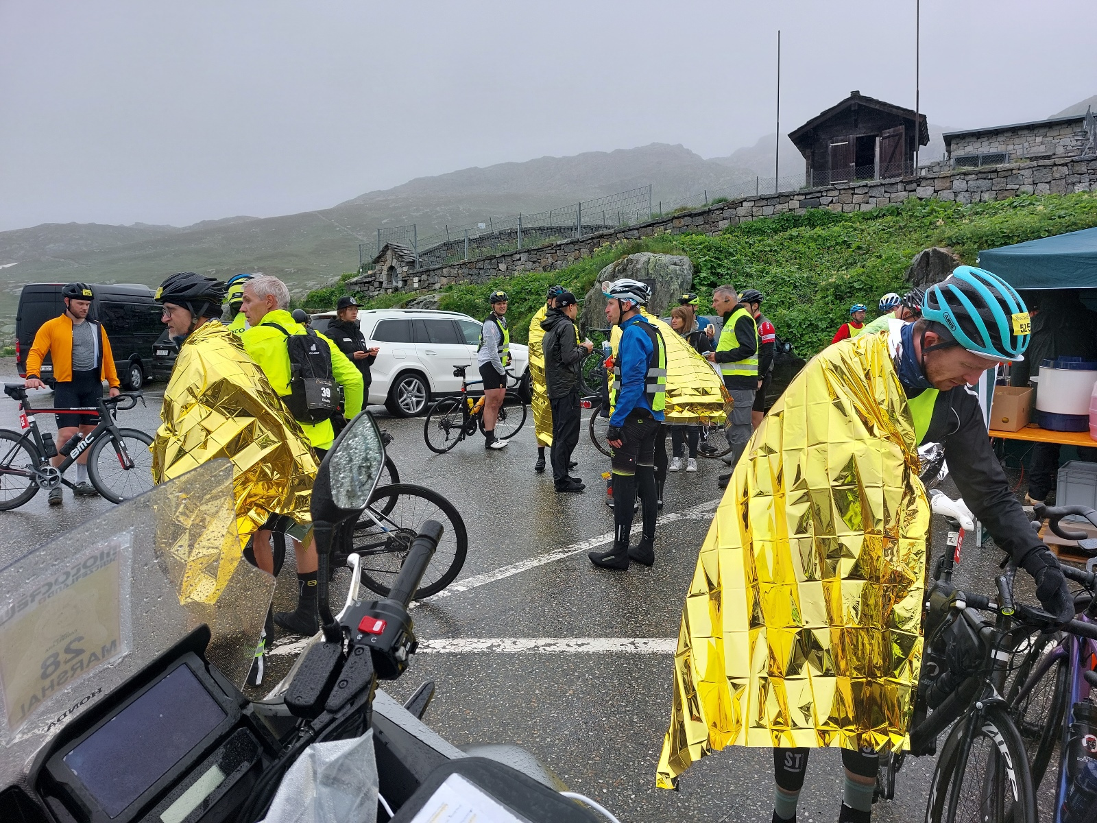 Dann schlug mal wieder die Stunde der motocrew und hat gezeigt zu welch ausserordentlichen Leistungen sie fähig ist. Marshals haben an allen Ecken und Orten den Verkehr geregelt, die Teilnehmer informiert, organisiert und die noch pedalenden Fahrer auf die Grimsel Passhöhe "gezogen". Die Krönung aber war, als einer unserer lokalen Töfflern in Absprache mit dem OK kurzerhand in Innertkirchen einen 40-Plätzer Bus organisierte und auch selbst steuerte, damit alle verbleibenden Rennfahrer vom Grimsel nach Andermatt chauffiert werden konnten!