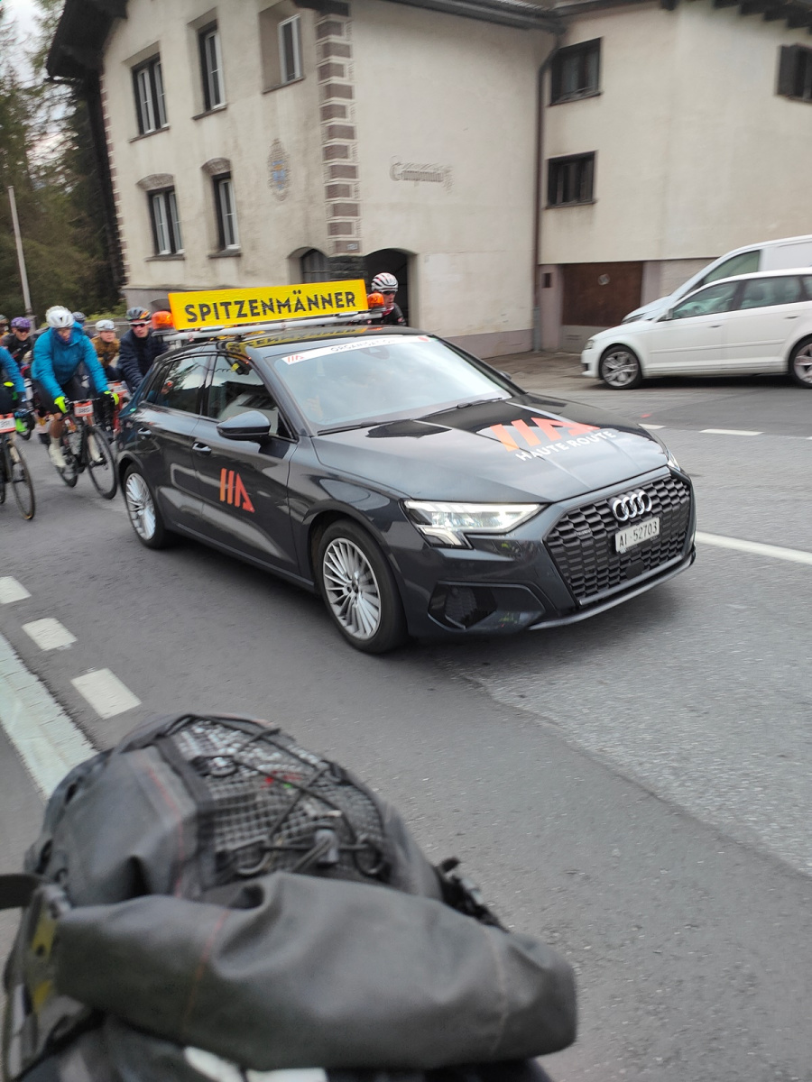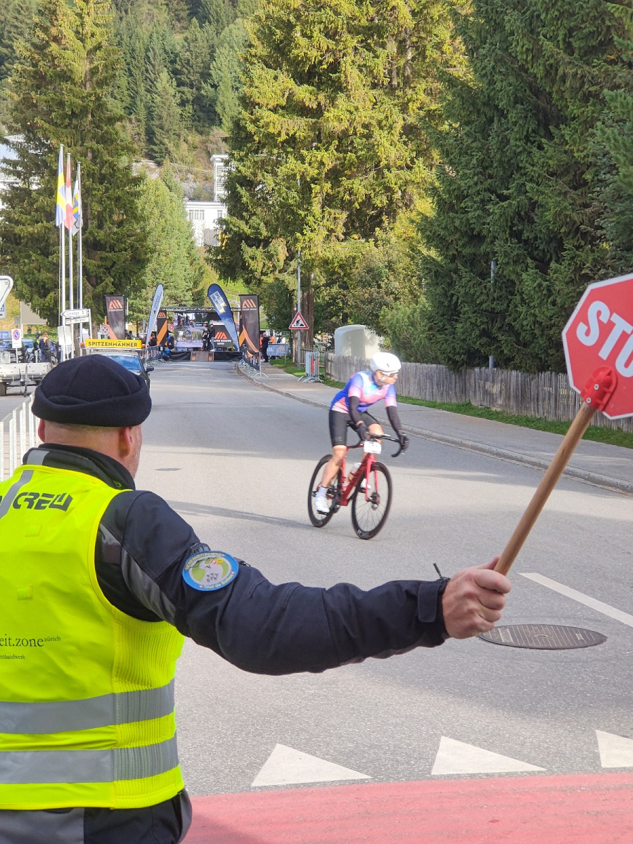 Der Sonntagmorgen kam und mit ihm die Nervosität zum Start des 12km langen Zeitfahren von Davos hinauf auf die Flüela Passhöhe. Die Temperaturen waren schon bei fast 8Grad und viele Teilnehmer starteten schon wieder in Gewichtsoptimierten kurzen Hosen und Shirts. Brrr…  Alle sind oben angekommen, haben die Medaille bekommen und sind wieder zurück nach Davos gefahren. Für uns war es ein sehr erfolgreicher Anlass und die Veranstalter haben sich schon sehr bedankt, sowie uns für das Jahr 2024 angefragt.