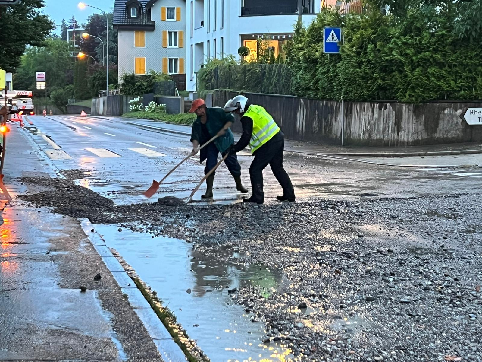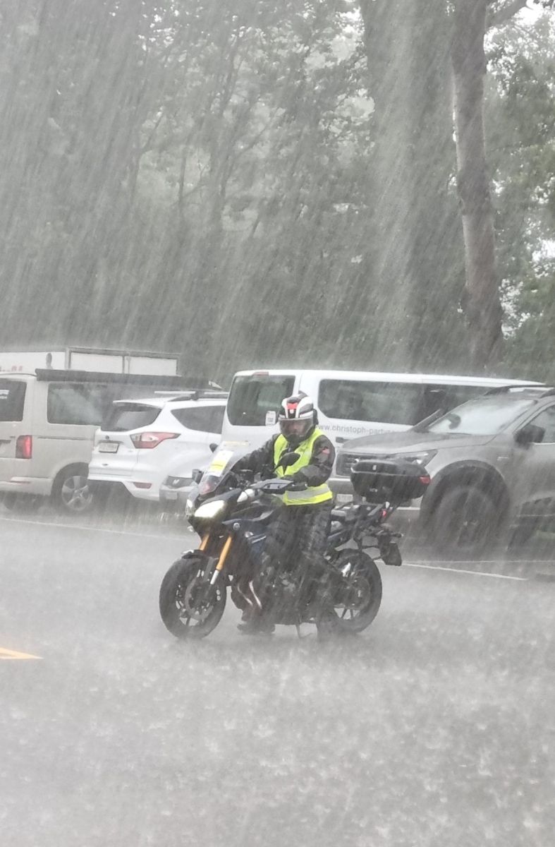 Auch an diese Tortour hatte das Wetter einige Überraschungen für uns bereit. Der Start auf die 1000km Runde verlief noch trocken. Im Verlaufe der Nacht kam dann Regen auf und es kamen die ersten Unwetter. Ganz schlimm erwischte es am Freitagabend die Timestation in Hemberg. Das Zelt wurde zerstört und die ganze Station stand im strömenden Regen. Eine weiter Herausforderung bahnte sich im Rorschacherberg an. Die Vorhut der Motocrew meldete ein starkes Gewitter über Rorschach mit Überschwemmungen, verschmutzen und gesperrten Strassen. Aber auch diese Herausforderung wurde durch unsere Truppe angepackt und souverän gelöst. Es zeigte sich, dass unsere Marshals auch mit Schneeschaufeln umgehen können.
